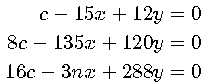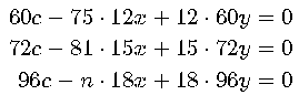 Ara només cal en la tercera equació, que era 16c-3nx+288y=0$, on hi