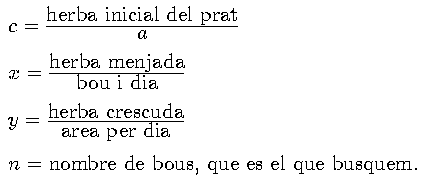 Ara que ja hem definit les incògnites que utilitzarem, ja es poden