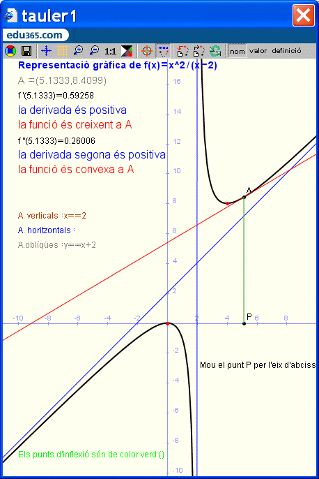 - Intervals de concavitat i convexitat, i punts d’inflexió.