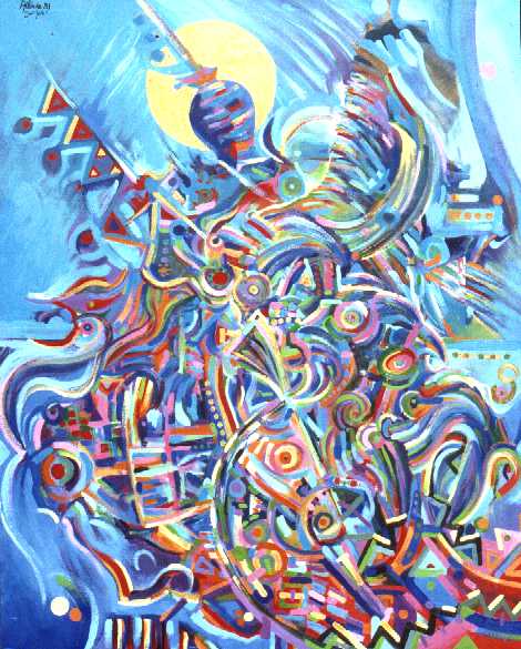 Estas pinturas se generan en un breve período de investigación pictórica y transición en la obra del pintor, donde podemos observar influencias y referencias formales y cromàticas al arte, la cultura y el paisaje hindúes.