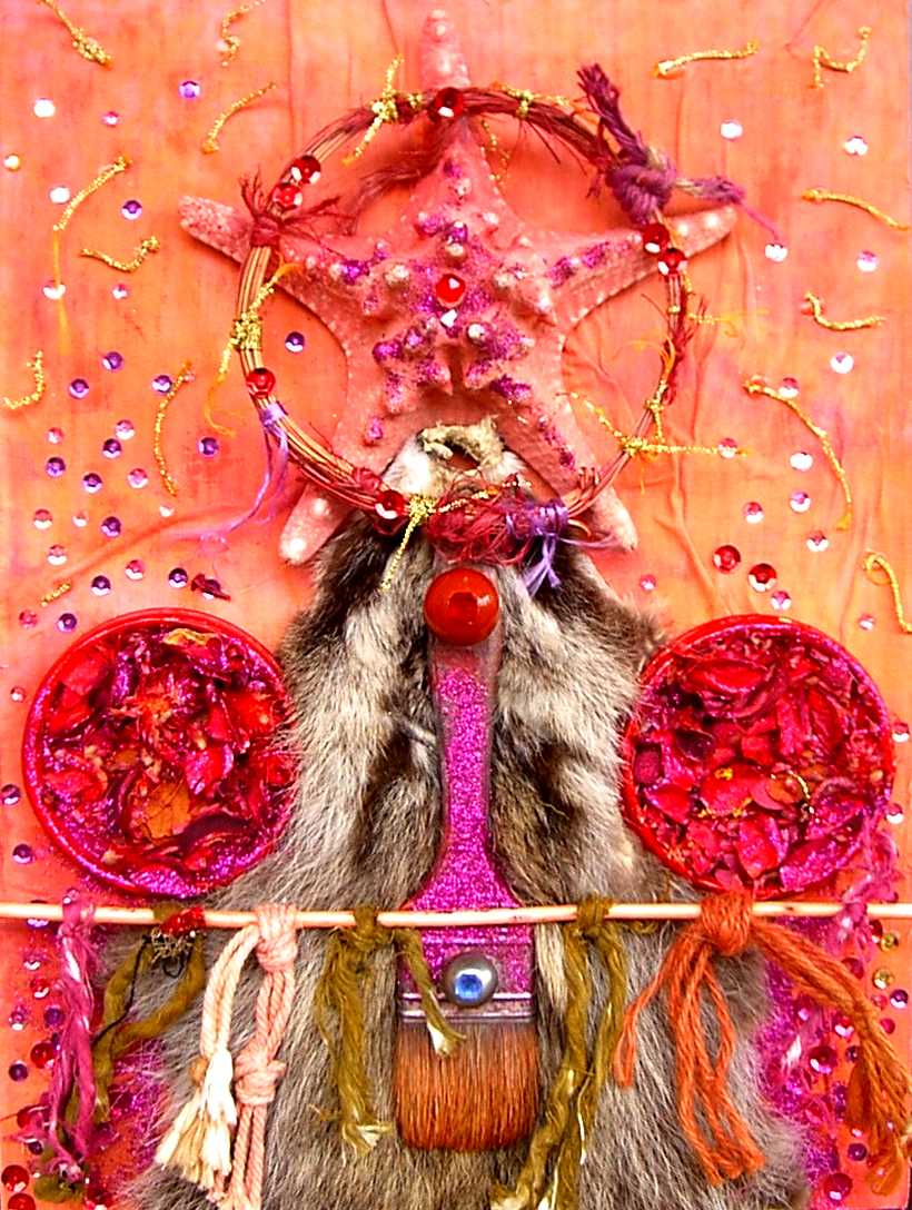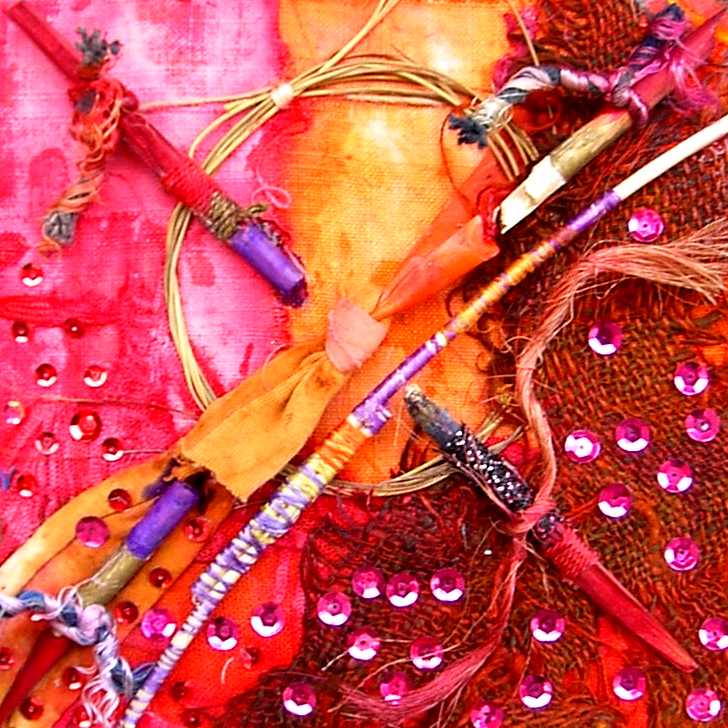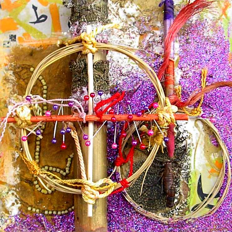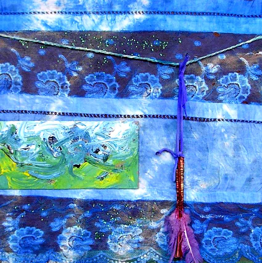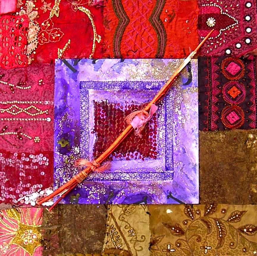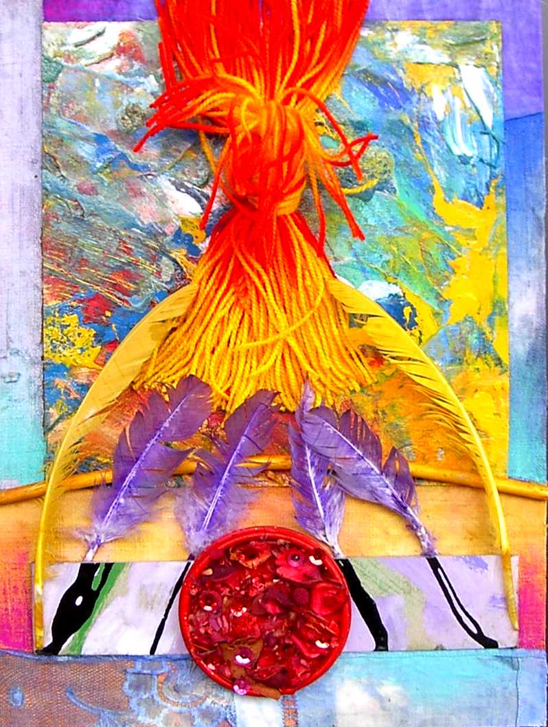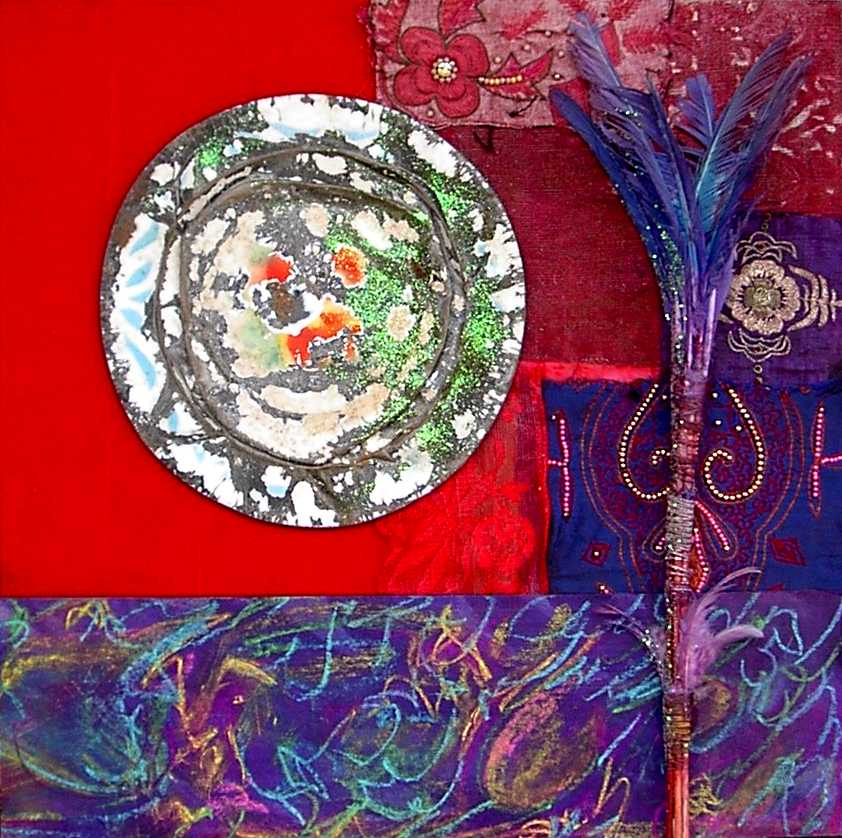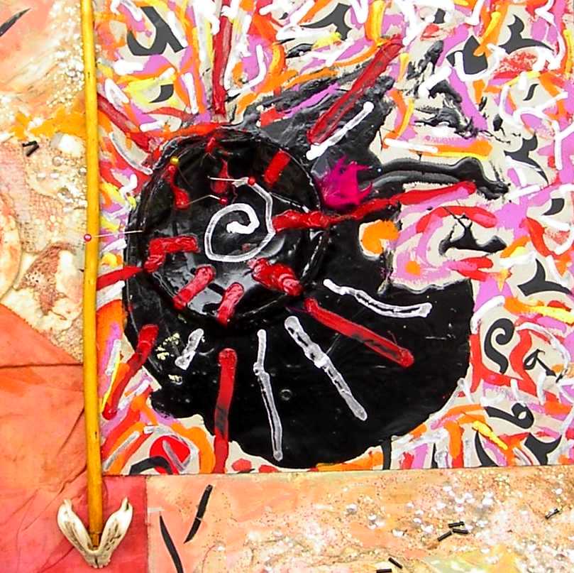 La composición y el color evocan ciertos el trabajos pretéritos del pintor que enlazan con propuestas y mensajes de nueva factura, de tinte intercultural, que se combinan y entrelazan con un sinfín de objetos cuya presencia, forma, significado, textura, color y riqueza establecen, por sí mismos, un diálogo, a veces ritual, que el artista aborda y modera con la vocación de un chamán locuaz y las artes de un pintor que ha enmudecido.