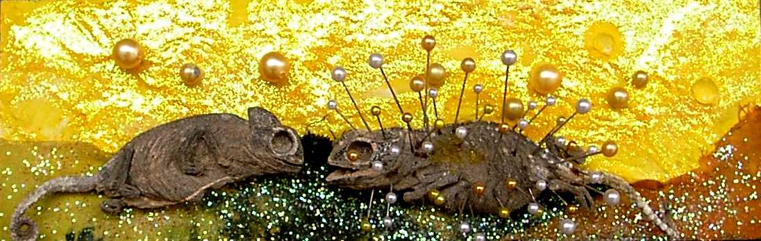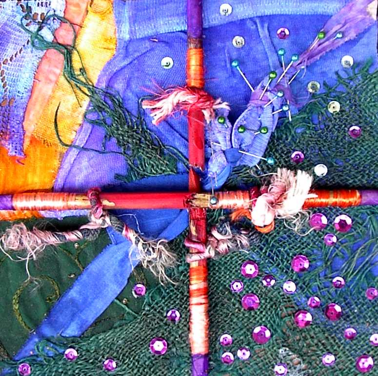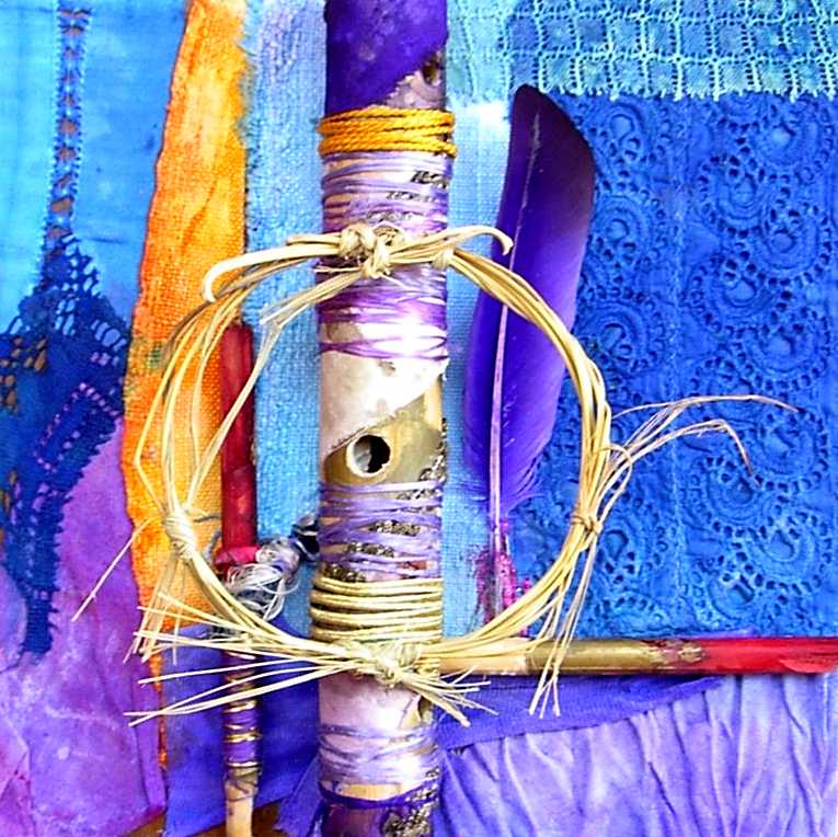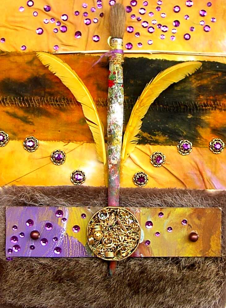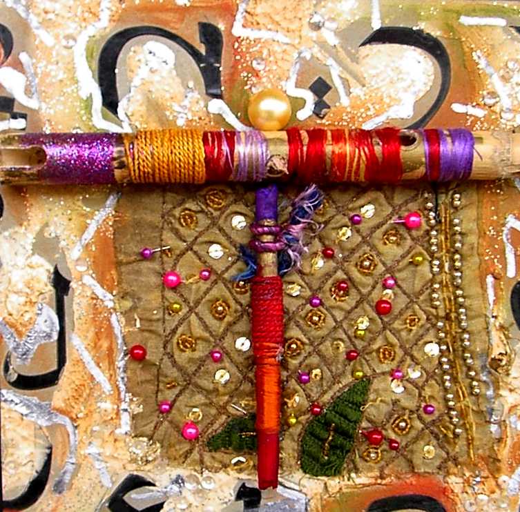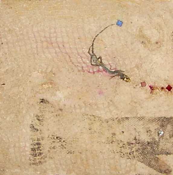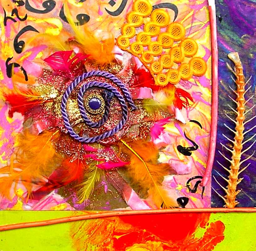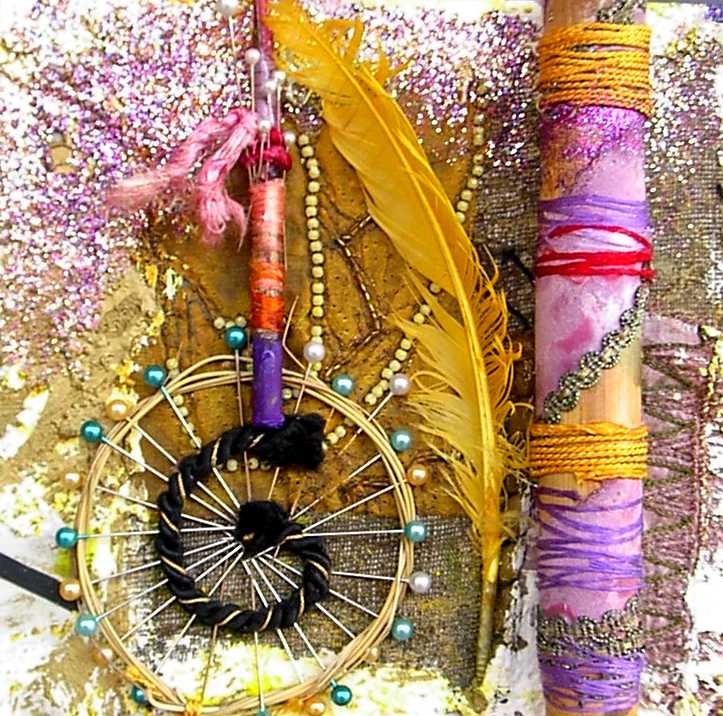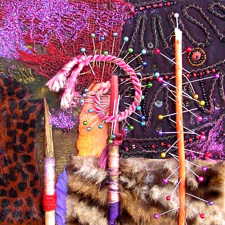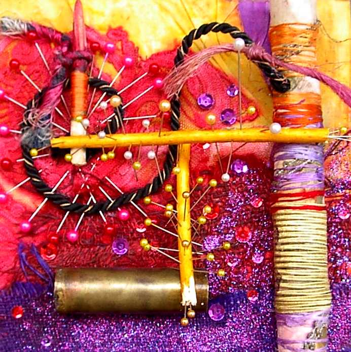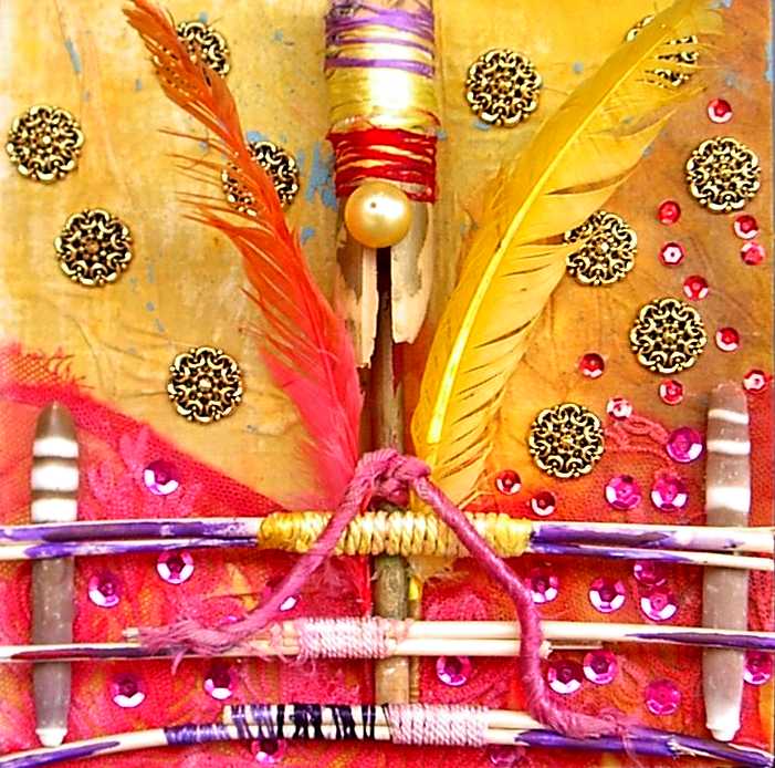 La composición y el color evocan ciertos el trabajos pretéritos del pintor que enlazan con propuestas y mensajes de nueva factura, de tinte intercultural, que se combinan y entrelazan con un sinfín de objetos cuya presencia, forma, significado, textura, color y riqueza establecen, por sí mismos, un diálogo, a veces ritual, que el artista aborda y modera con la vocación de un chamán locuaz y las artes de un pintor que ha enmudecido.
