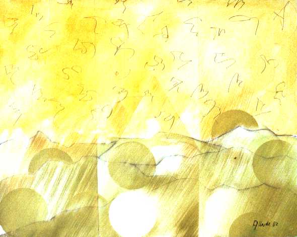 La investigación y la búsqueda de nuevas técnicas formas y contenidos son una constante en este breve período en que el pintor incorpora caligrafías flotantes ilegibles, vacías de código, pero no de significado, a sus paisajes.