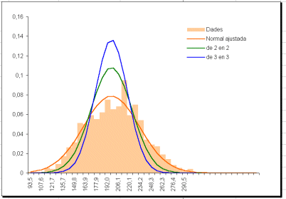 podem aproximar les dades amb la corba normal de mitjana 200,2 i desviació