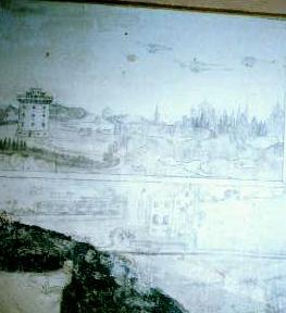 Durante la guerra civil (1936-1939), el castillo fue utilizado como cuartel y prisión de las Brigadas Internacionales. La capilla de la Salud probablemente alojó la guardia y los brigadistas dejaron una serie de grafitos que representan paisajes y personajes históricos del momento, barcos y aviones que se veían desde el castillo, y otras representaciones más simbólicas e imaginativas. Son un testimonio de la época, en una iglesia de Santa María muy abandonada. |