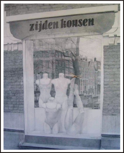 ZIJDEN KOUSEN (mitjes de seda) Leidsestraat - Keizersgracth - AMSTERDAM Setembre 2004 - Llapis grafit i llapis color sobre paper - Format 106 x 135 cm.