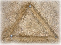 Situació inicial: Es dibuixa un triangle equilàter a terra d'uns 40 o 50 cm. de costat. Cada participant col·loca les bales que s'aposta en els vèrtex del triangle. Es marca una línia de llançament o "tiradera" a uns tres metres de distància.