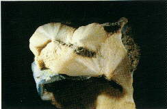 J.Sanz Duresa: 3 Exfoliació: Color: blau cel, blau fosc Ratlla: blau cel Lluïssor: Cristal.lització: Aspecte: Terrós.