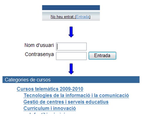 3. Entrar al curs seleccionant-lo de la llista. Els cursos se solen organitzar en categories i subcategories, en aquest cas, caldrà seguir tot el camí fins localitzar-lo. |