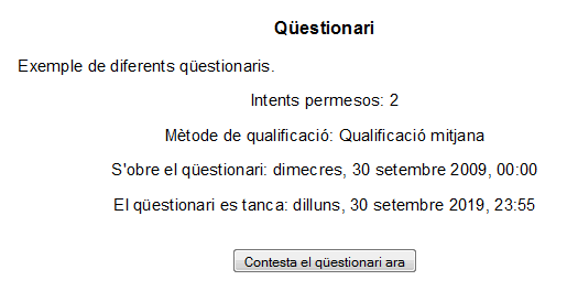 - Un botó [Contesta el qüestionari ara] per posar-nos a fer el qüestionari