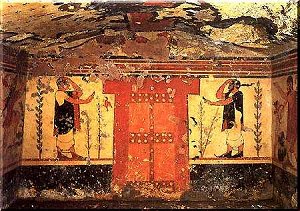 El seu art és eminentment de caràcter religiós, amb la intenció d'obeir la voluntat dels seus déus, per tal de no caure en desgràcia. Igualment, tal i com també succeïa en les civilitzacions egípcia i mesopotàmica, el poble etrusc dona molta importància a la vida després de la mort.