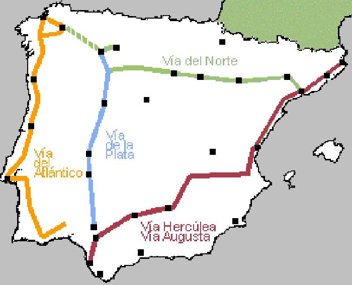 Mapa de les vies romanes a la Península Ibèrica
