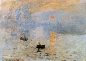 Autor: Claude Monet (1840-1926). L'aigua també és el marc per treballar. De bon matí, tot just el Sol s'aixeca, els homes ja treballen al port de l'Havre, entre la boira del matí i la sortida del Sol.
