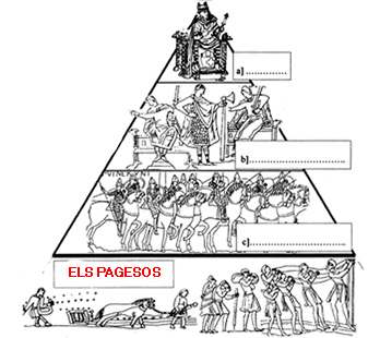 4.-Situa en la piràmide aquests noms: GRANS SENYORS - REI - PETITS SENYORS