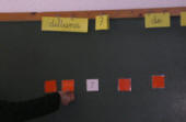 S’explica a la classe que es faran bosses que contindran diferents quantitats de caramels (4, 26, 62, 30, 12 i 40) i es donen etiquetes amb preus diferents per adjudicar a cada bossa: 45, 10, 40, 60, 25, 85 cèntims. Es demana aparellar preus i bosses i, en grup petit, confrontar acords i discrepàncies en l’adjudicació de preus. |