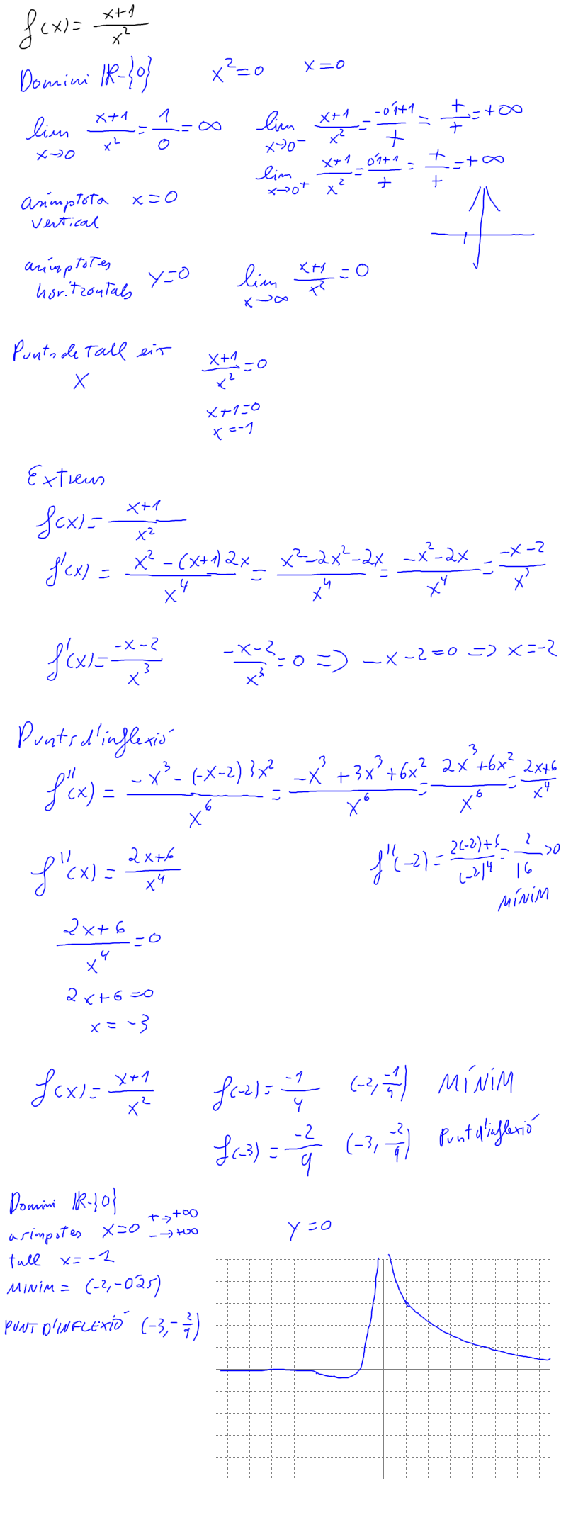 A nivell ilustratiu dibuixem la gràfica amb el programa funcions per a windows: ![]() Si fem zoom a l'escala de l'eix de les Y podem veure una mica millor on hi ha el mínim i el punt d'inflexió: ![]() |
