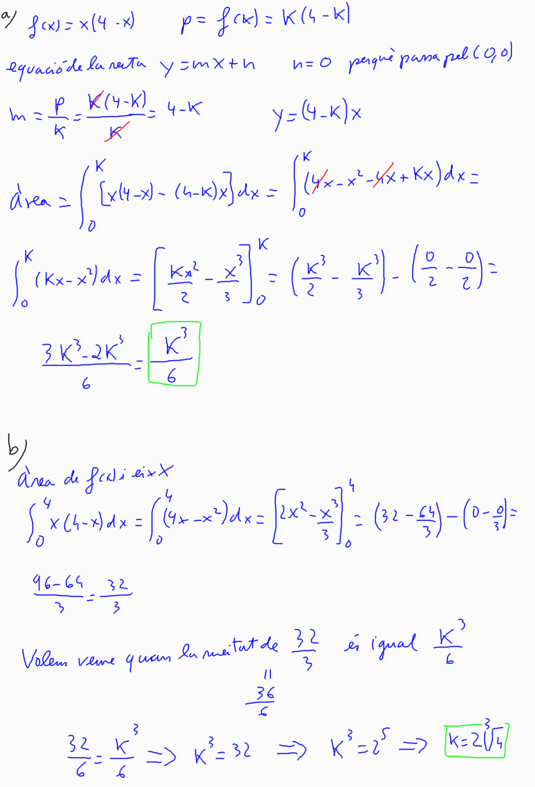 6. (2010-juny-5) 6. En la figura es mostra la corba y = x(4 - x) i una recta r que passa per l'origen i talla la corba en un punt P d'abscissa k, amb 0 < k < 4.