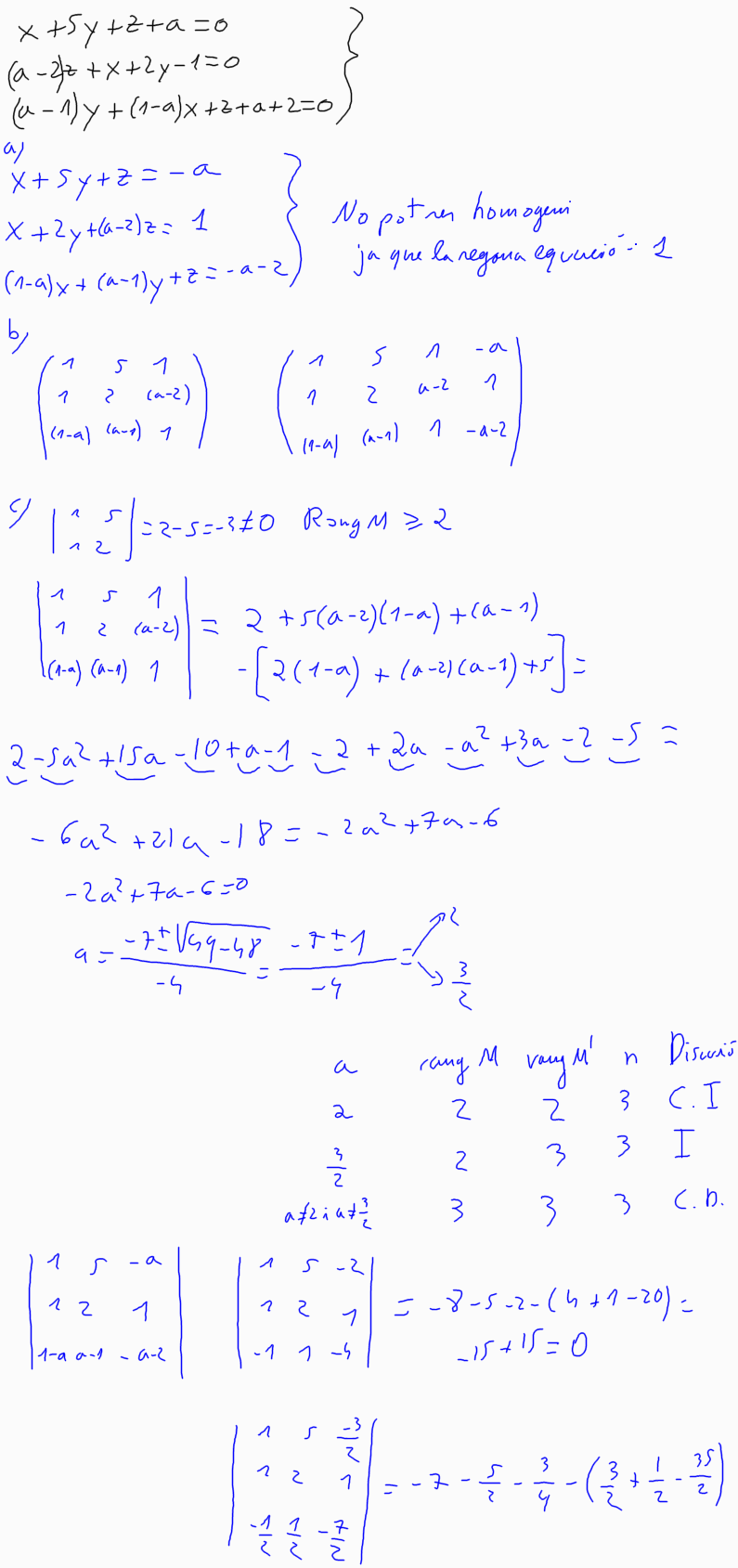 Això és quan el Sistema és Compatibe Indeterminat i això passa quan a = 2