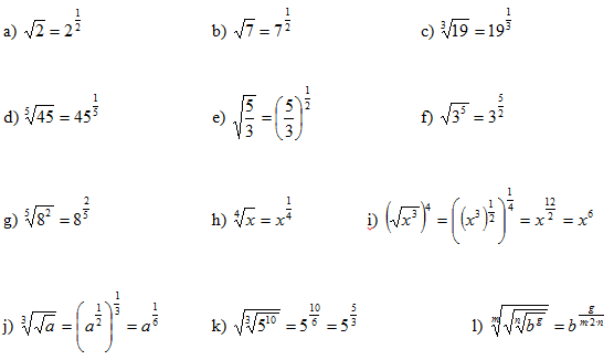 Expresa les següents arrels en forma de potència: