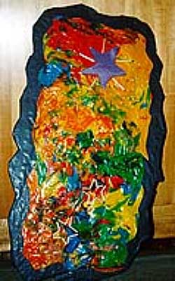 és un quadre que combina la plastelina de diferents colors amb elements de fusta i mistos