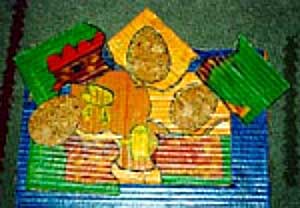 puzzle fet a tres nivells; en el primer nivell hi ha uns pollets pintats, en el segon hi ha els ous de suro, i al tercer la gallina que podeu veure