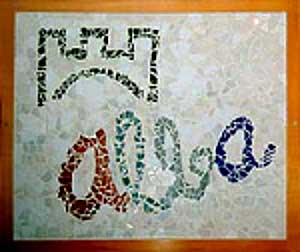 mosaic logotip de l'escola; el vam fer amb rajoles trencades de diferents colors i guix entre rajola i rajola