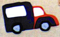 aquest camió és per penjar les claus, és fet per peces de fusta pintades i encolades