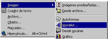 1. Seleccionarem: Menú Insertar - Imagen - WordArt...