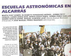 "Escuelas Astronómicas". Article a la revista "Astronomia" en col·laboració amb professores de l'Escola Bressol Municipal d'Alcarràs. Número 121-122, agost 2009, pàgines 82-84.