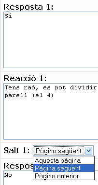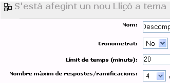 altra pàgina tot seguint una "ramificació". Posem un exemple: presentem una informació a l'estudiant i una pregunta amb 3 respostes: una de correcta que el permetrà seguir amb la lliçó, una falsa que li tornarà a presentar la mateixa pàgina i una tercera resposta que el durà a una pàgina de reforç que, un cop llegida, el retornarà al camí principal. Les lliçons permeten moltes possibilitats a l'hora d'introduir conceptes nous, procediments o, simplement, practicar una sèrie de conceptes apresos a través d'altres recursos. L'opció de donar format de diapositiva a les pàgines pot enriquir molt la presentació de qualsevol nou tipus d'informació. |