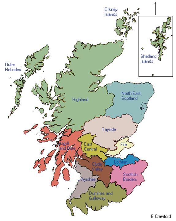 Escòcia està dividida en diferents regions: