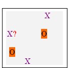 Children are divided in groups of 5 and one team of 3 attackers (X) plays against one team of 2 defenders (O). One defender is in the goal. The 3 attackers must pass 3 times before a shot. They have to try to attack in a triangular formation, not in line. The defender tries to tackle and dribble or pass over the line AB. The attacker who has the ball should d raw the defender and time the pass before the tackle.