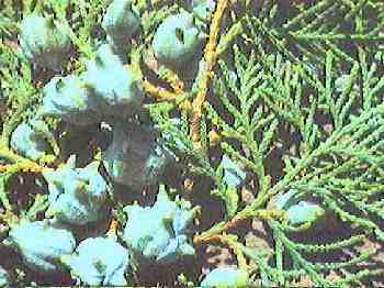 | Descripció: Arbre de talla petita o arbust (connífera), de fulla perenne, d'uns 20-30 m. d'alçada, de capçada gran i columnar o més freqüentment aovada i àmpliament piramidal, i d'escorça marró-vermellosa i poc solcada. |
