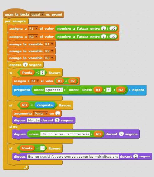 Un cop arribem als 5 punts podeu fer un missatge que feliciti al jugador i els proposi un nivell més complicat, les multiplicacions.