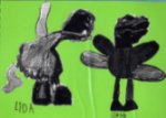Com a últim treball van realitzar un animal fantŕstic a tamany mural format per les parts que més els hi havien agradat. Finalment el van pintar amb tremp d'ou i el van envoltar de sanefes també fetes i triades per ells. Els hi van posar un nom i un so.