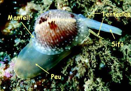 La boca pot presentar peces mandibulars segons els tipus d'alimentació (mandíbules anteriors i ràdula - cinta proveïda de dents que actuen com un llima movent-se endavant i endarrere).