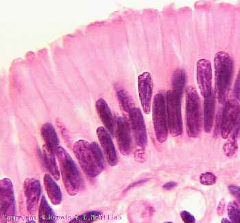 Figura 38.- Imatge al microscopi òptic del teixit epitelial de l'intestí d'una granota. Fotografia de Biodidac © R. Harris & D. McMillan.