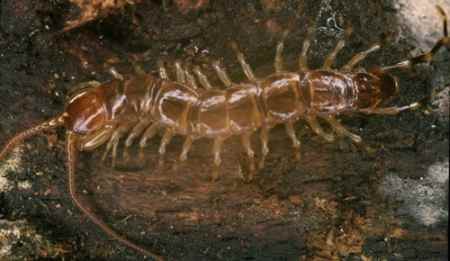 58.- Visió dorsal d'un centpeus del gènere Lithobius. Fotografia