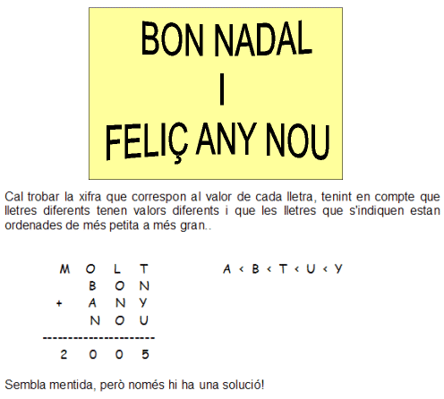 Fent diferents proves i conforntant el valor de N amb les possibilitats d ela suma anterior arribem a la conclusió que la suma correcta, l'única possible és: