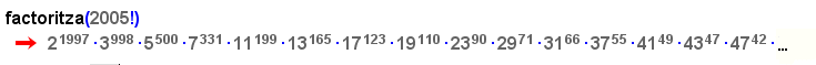 escriviu 2005!. Segurament ja sabeu que 2005! és el resultat