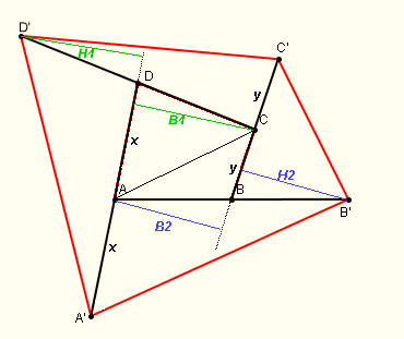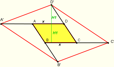 Veig que els triangles A'D'D i C'B'B són iguals per angles corresponents entre paral·leles. I llavors l'àrea del triangle A'D'D és 2 · x · H1 / 2 = x · H1 = àrea del paral·lelogram ABCD = 401