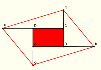 2.- a) Es tracta que demostreu que si, a partir d'un rectangle ABCD que té 401 unitats d'àrea allargueu els costats, tots cap a la mateixa banda, fins que la longitud s'hagi doblat i uniu els punts resultants, d'aquesta manera construïu un quadrilàter d'àrea 2005 unitats d'àrea.