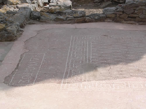 Mosaic amb inscripció (Empúries, Espanya)