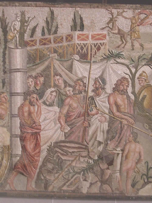 Mosaic romà amb escena del sacrifici d'Ifigènia (Museu d'Arqueologia de Catalunya, Barcelona, Espanya)