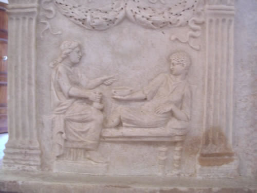 Relleu amb banquet i divà (Museo Nazionale romano Terme di Diocleziano, Roma, Itàlia)