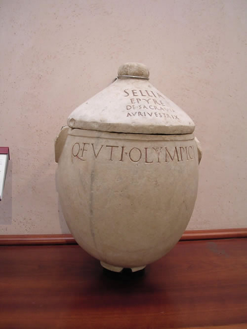 Urna cinerària amb inscripció (Museo Nazionale romano Terme di Diocleziano, Roma, Itàlia)
