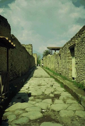 Carrer pavimentat i voreres. Pompeia (Itàlia)