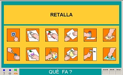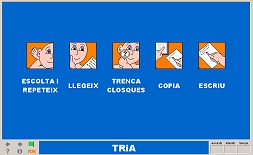 Selecció d'algunes accions elementals de comunicació bàsica amb els verbs conjugats a la 3a persona singular del present d'indicatiu.