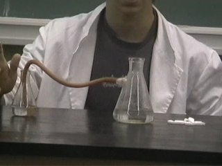 Hem pogut apreciar com el gas que provenia del kitasato en barrejar-se amb la dissolució que teníem a l'erlenmeyer ha fet que aquesta es torni tèrbola, quan inicialment era transparent. |