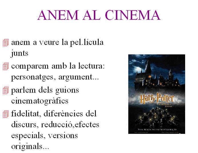 les pel.lícules entre nosaltres, penseu en la possibilitat de veure-les col.lectivament i després fer tota mena de treballs de comparació amb
